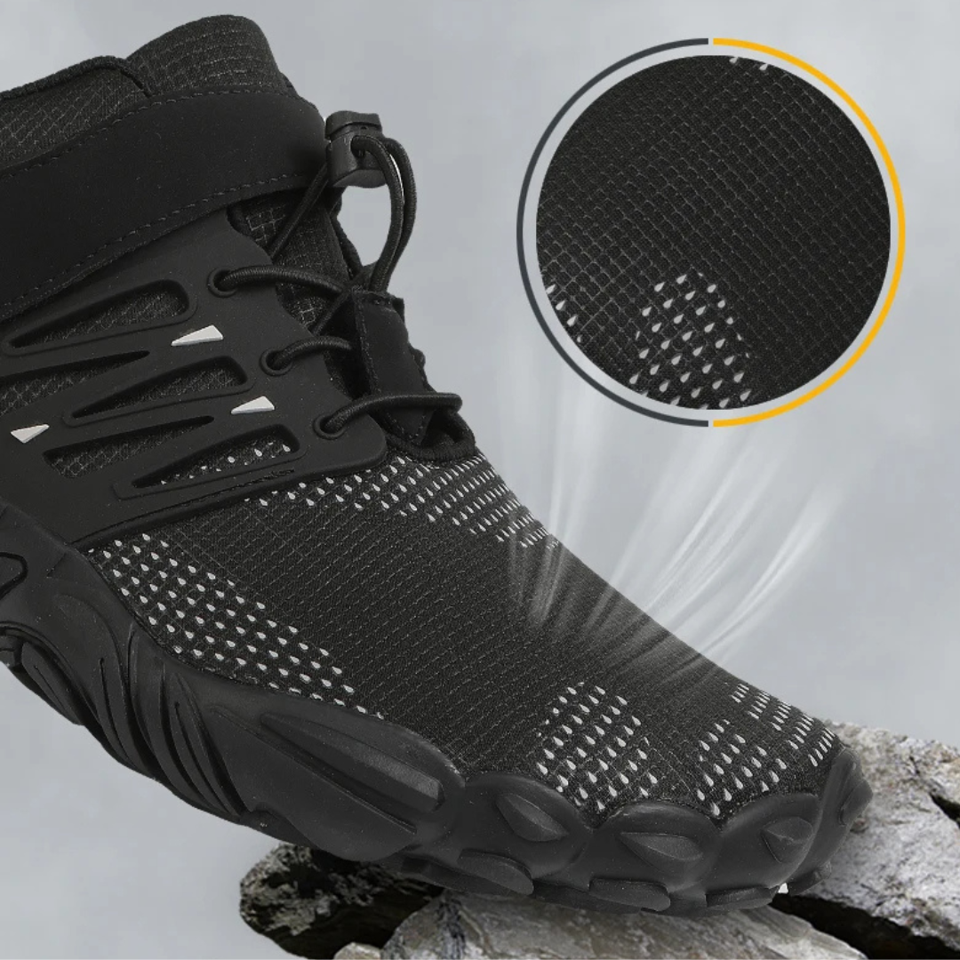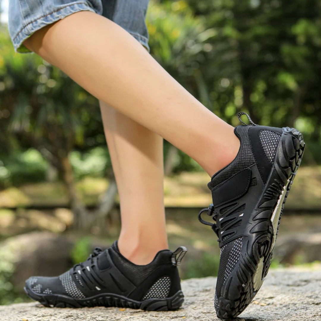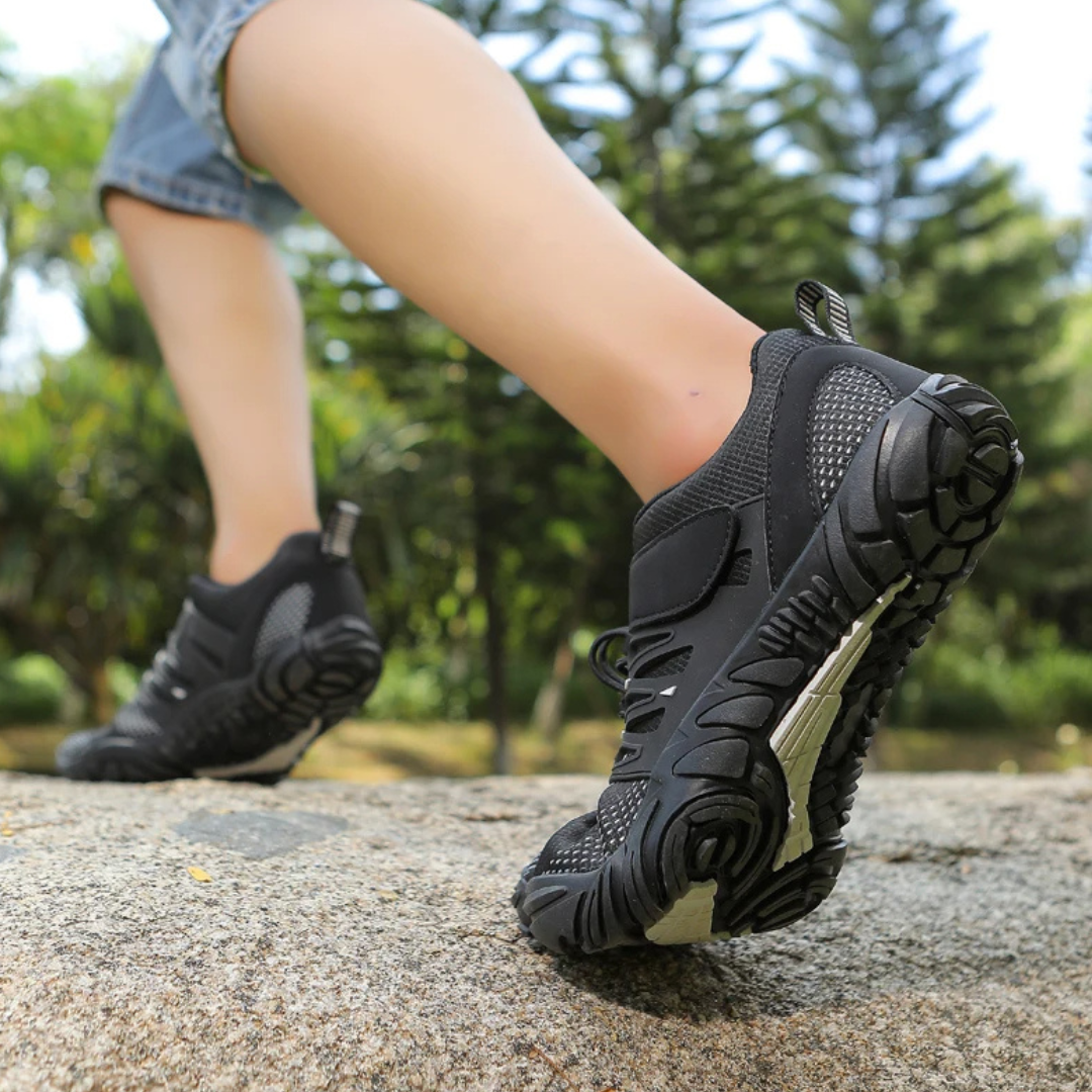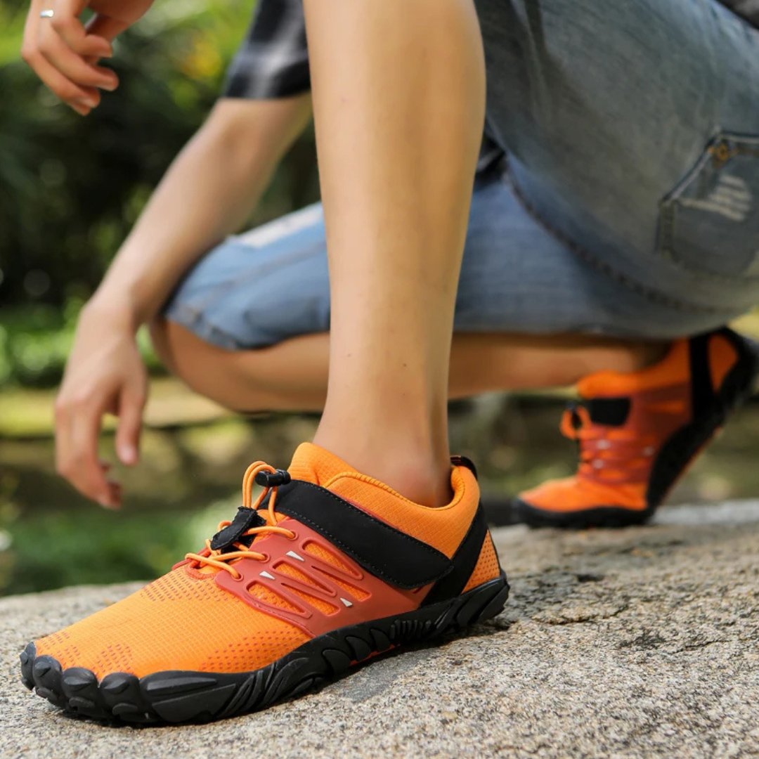 Do you want a shoe that is easy to put on and take off? Look no further than our Barefoot Trail Explorer Sneakers! These innovative shoes feature no tie laces and velcro, making them a breeze to slip on and off. Not only that, but they are also durable, extra light, and have a wide toe box for maximum comfort. With a 0 drop design, these sneakers provide a barefoot experience while still offering protection for your feet. Plus, they are quick-drying, making them perfect for any adventure.