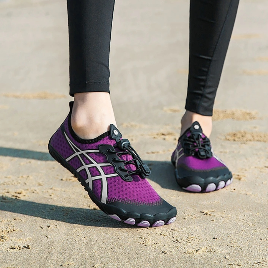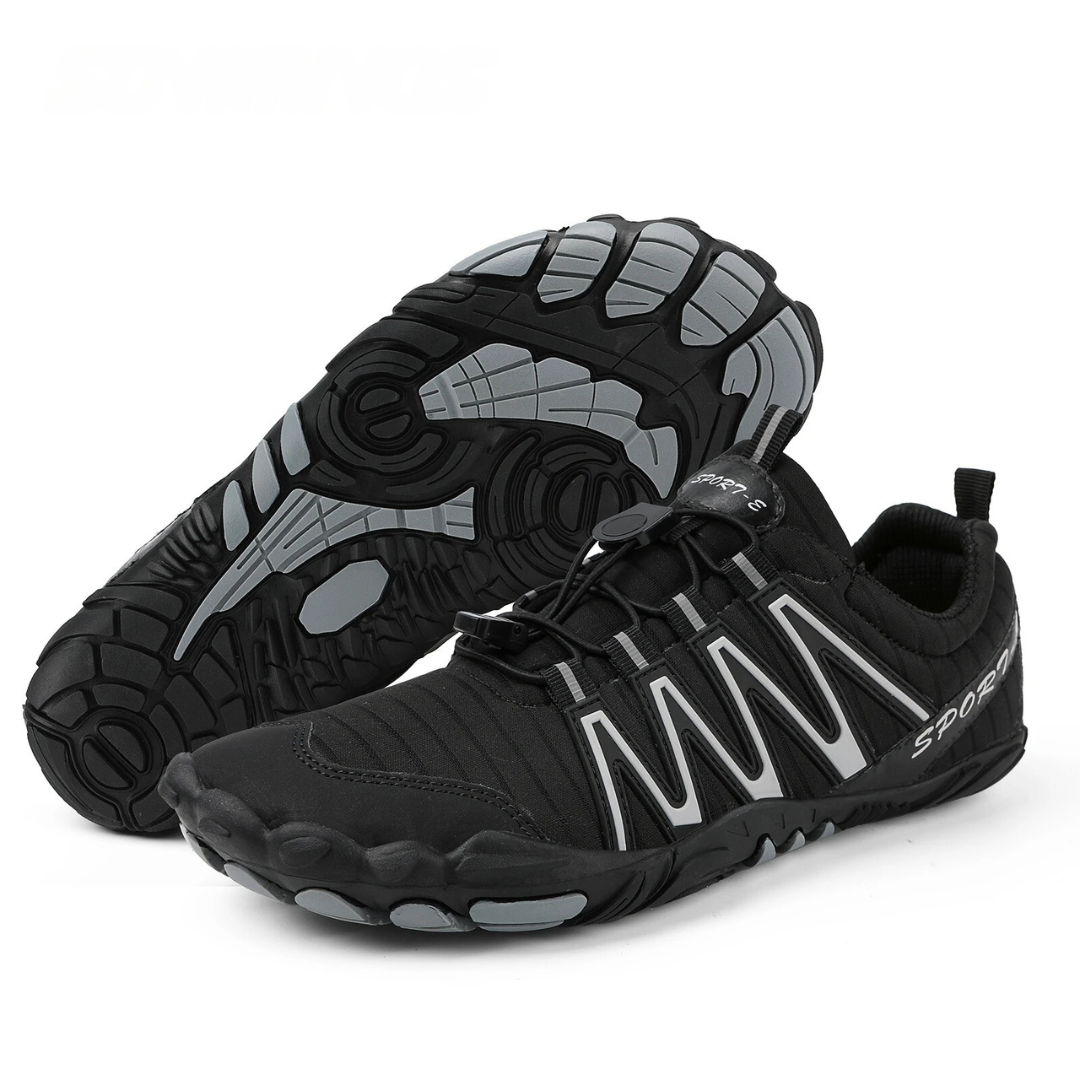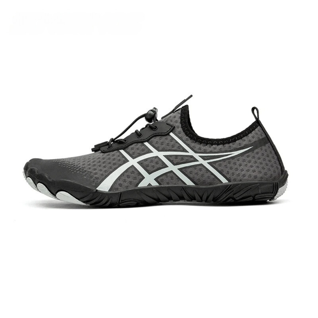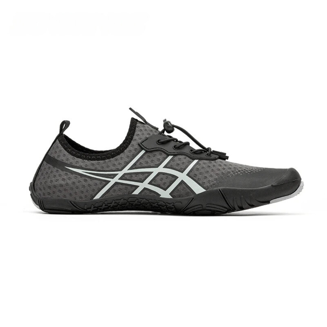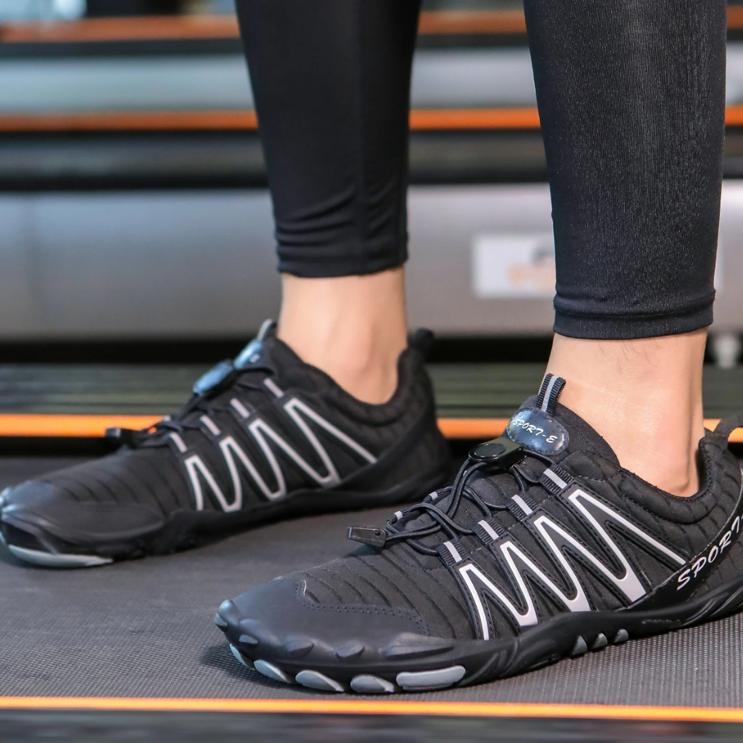 Elevate your athletic performance with these Unisex Cross-Trainer Barefoot Minimalist Shoes. Designed with a zero drop sole and wide toe box, these shoes promote natural movement and comfort. Ideal for a variety of activities including swimming, beach outings, surfing, and cross-training, these shoes feature a breathable stretch fabric upper and a durable rubber outsole. The elastic band closure ensures a secure fit, making them perfect for both men and women. Experience the ultimate in flexibility and support with these versatile water shoes.