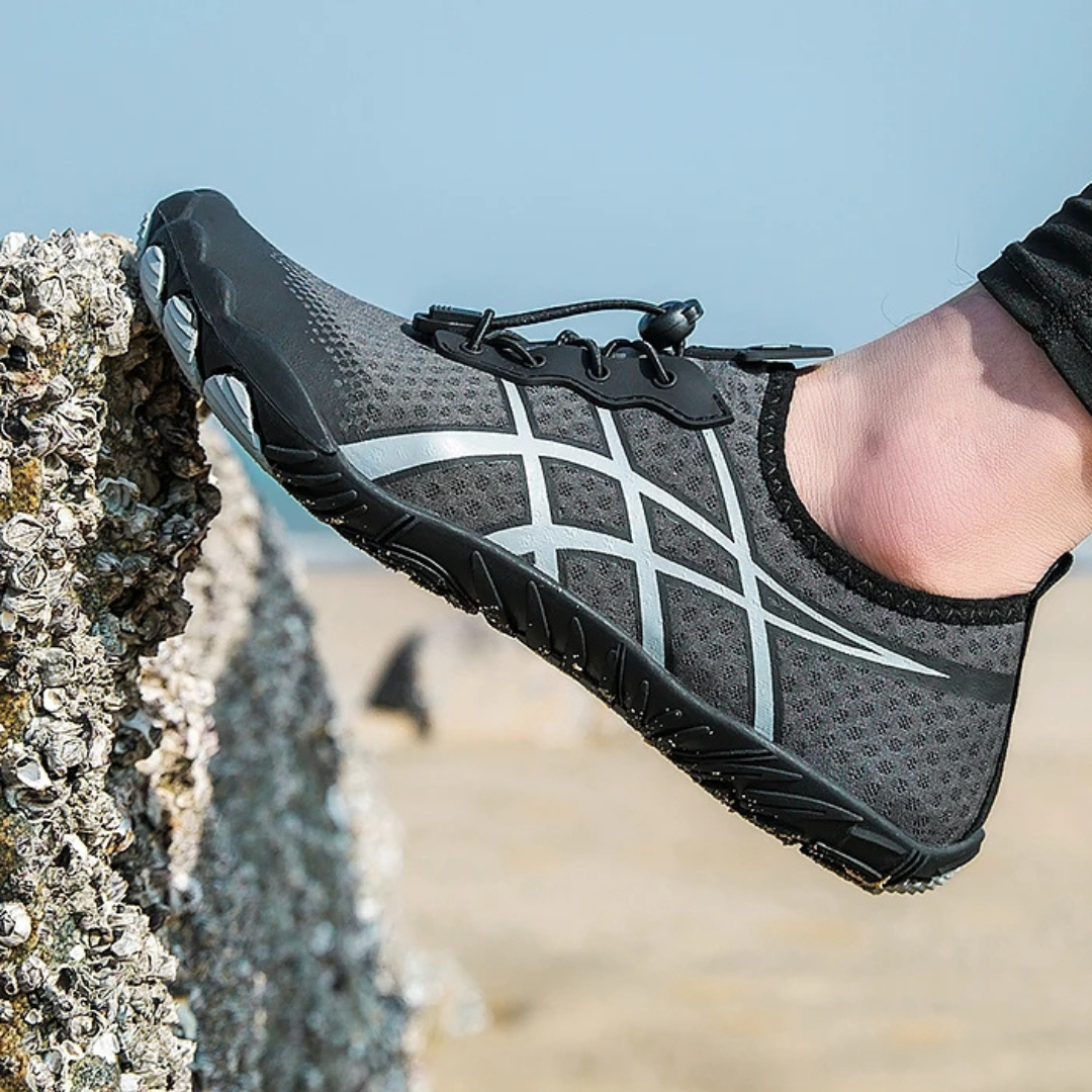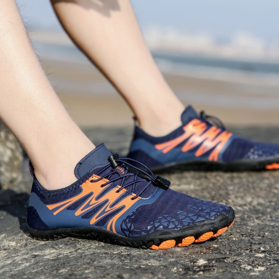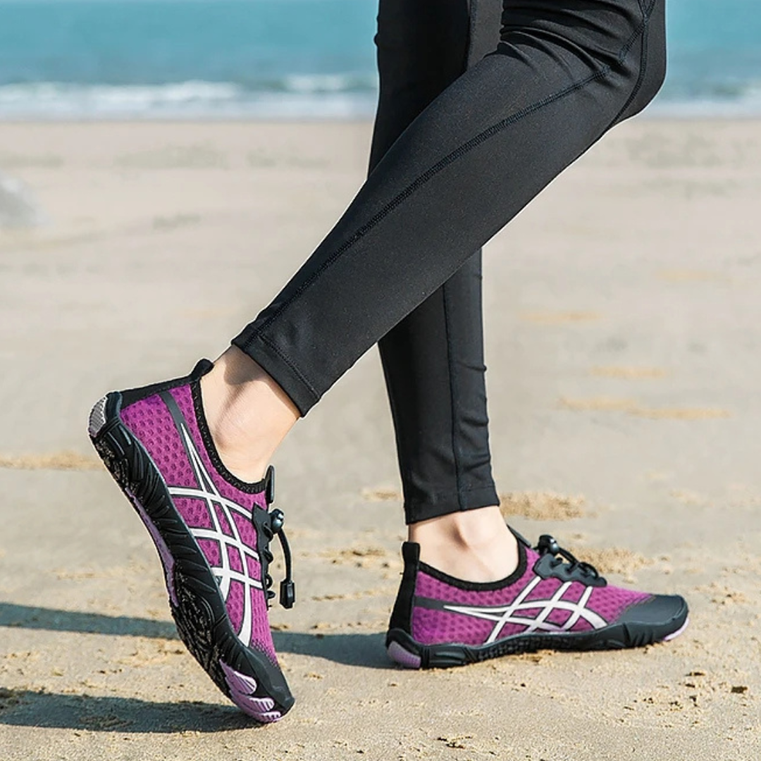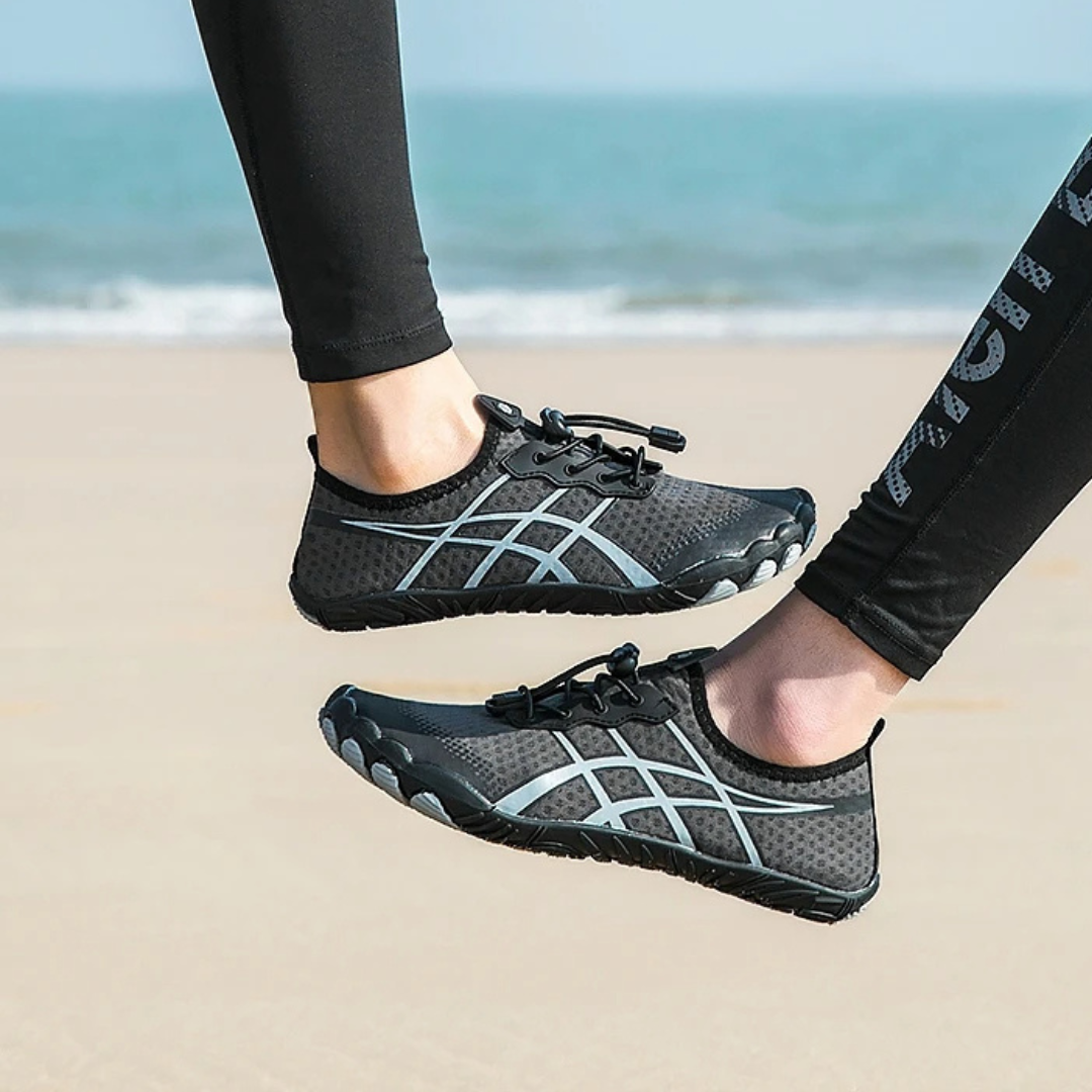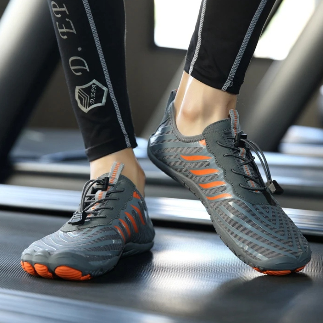 Elevate your athletic performance with these Unisex Cross-Trainer Barefoot Minimalist Shoes. Designed with a zero drop sole and wide toe box, these shoes promote natural movement and comfort. Ideal for a variety of activities including swimming, beach outings, surfing, and cross-training, these shoes feature a breathable stretch fabric upper and a durable rubber outsole. The elastic band closure ensures a secure fit, making them perfect for both men and women. Experience the ultimate in flexibility and support with these versatile water shoes.