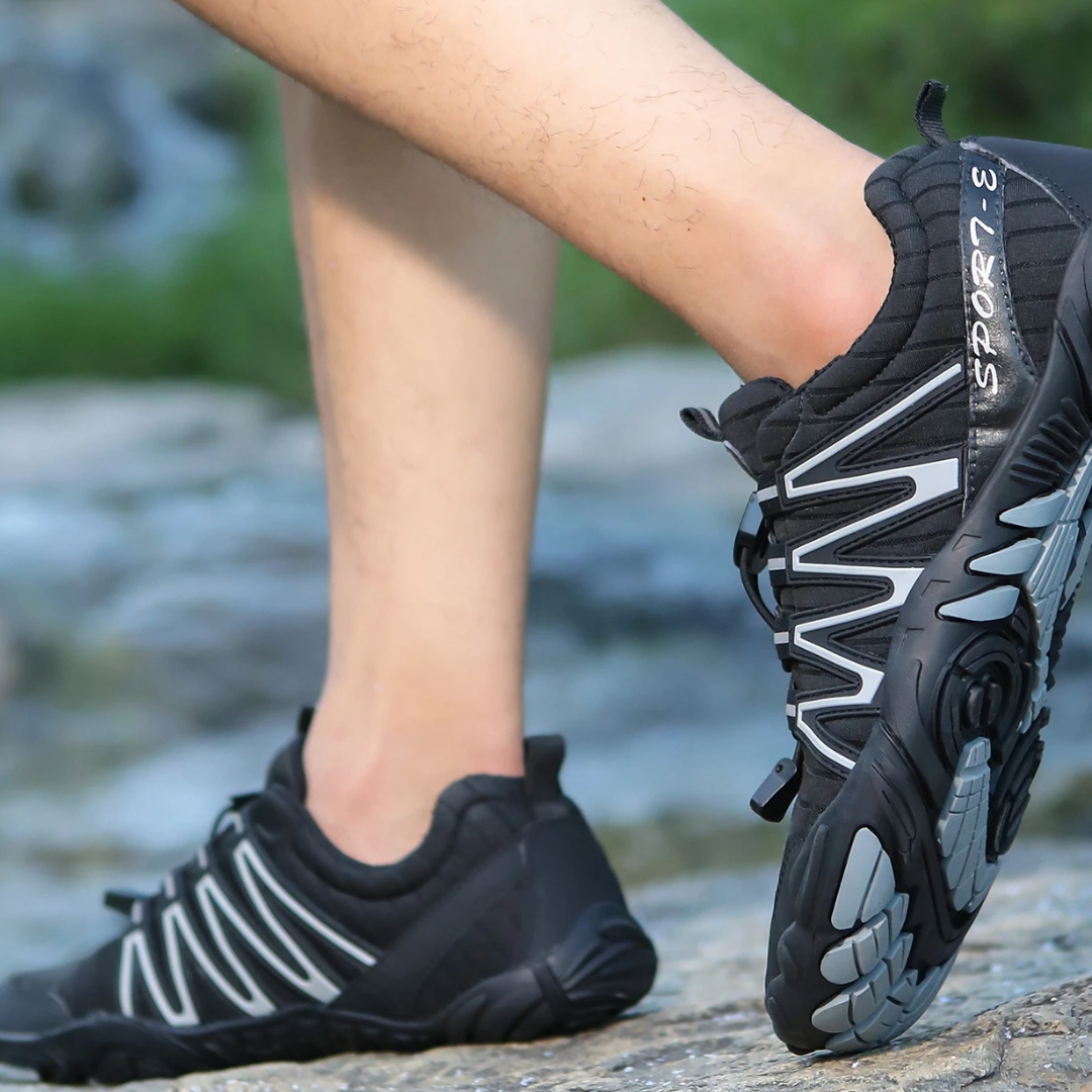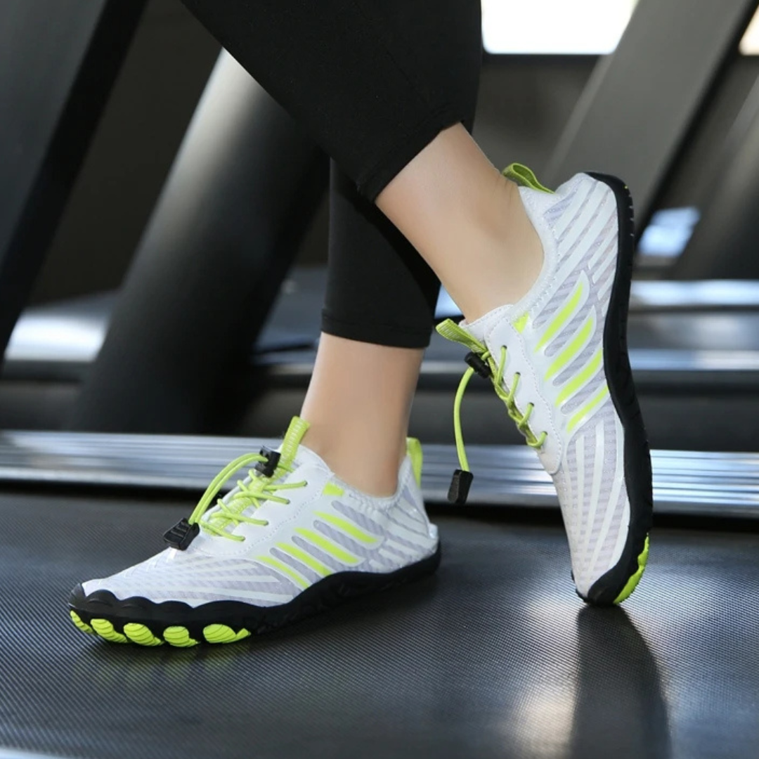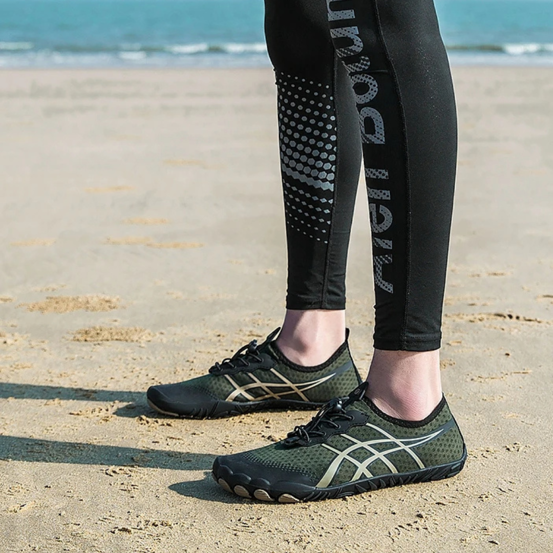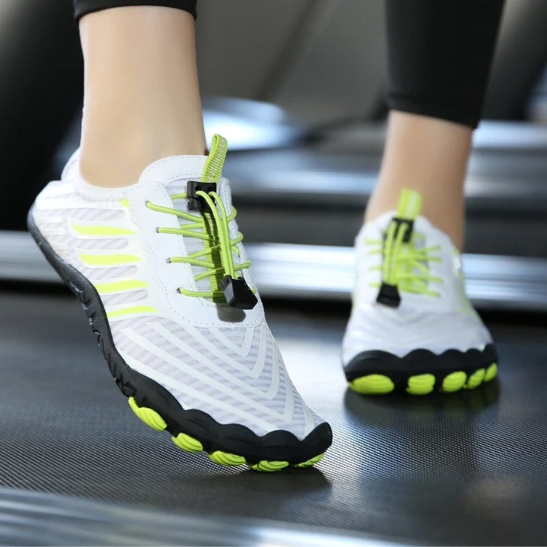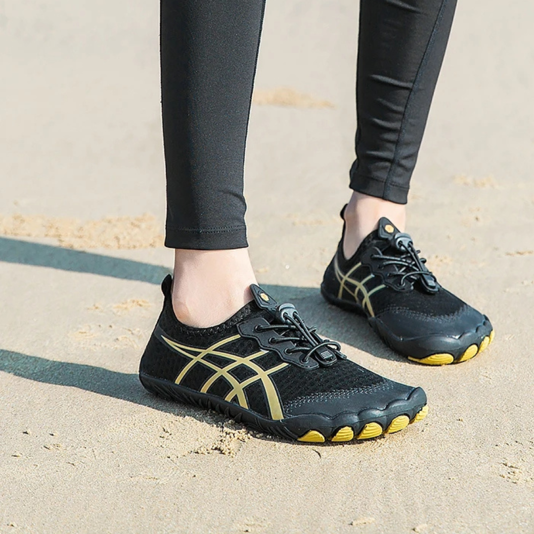 Elevate your athletic performance with these Unisex Cross-Trainer Barefoot Minimalist Shoes. Designed with a zero drop sole and wide toe box, these shoes promote natural movement and comfort. Ideal for a variety of activities including swimming, beach outings, surfing, and cross-training, these shoes feature a breathable stretch fabric upper and a durable rubber outsole. The elastic band closure ensures a secure fit, making them perfect for both men and women. Experience the ultimate in flexibility and support with these versatile water shoes.